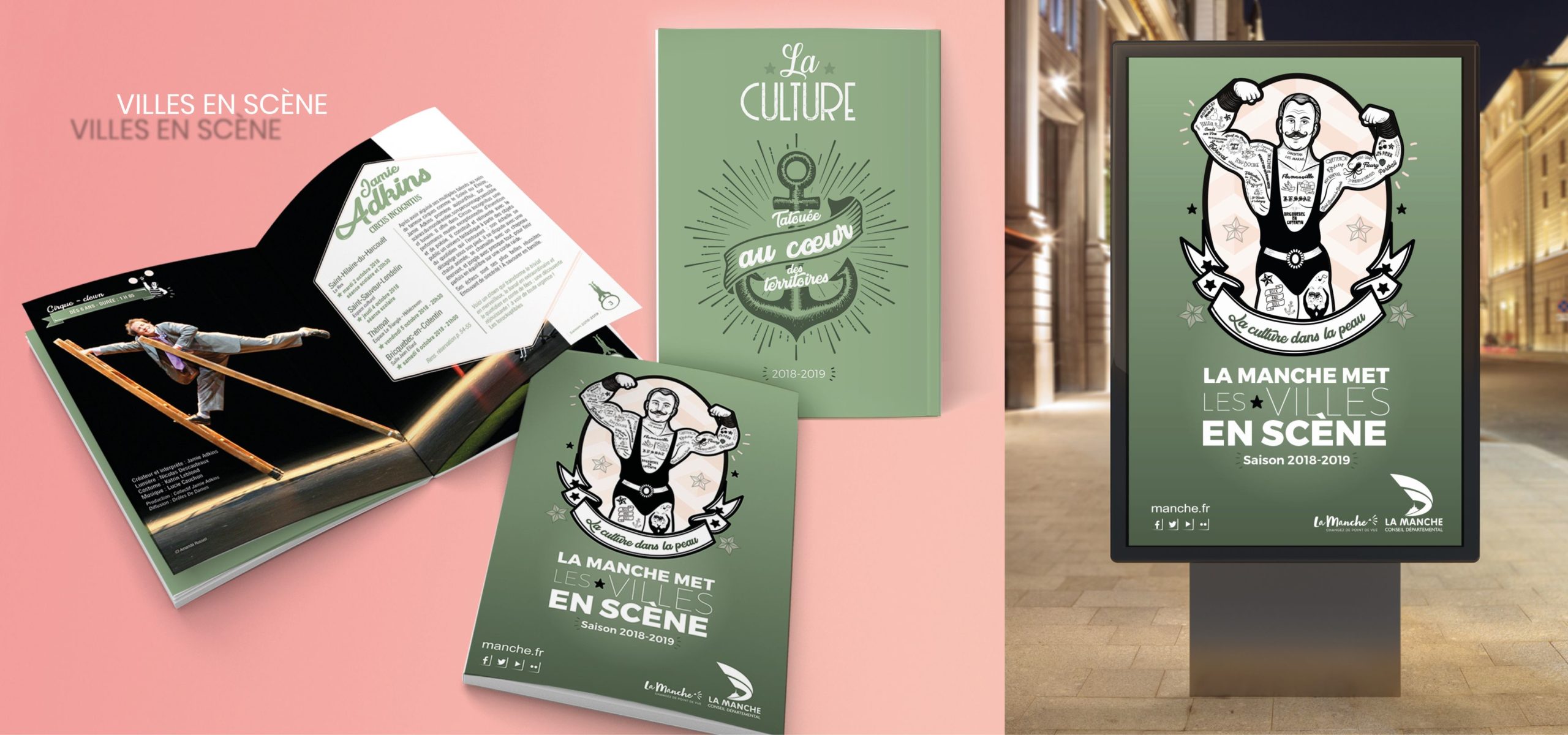 Le conseil départemental, dans le contexte de l’accord-cadre, nous a confié des campagnes et supports de communication variés. Que la culture soit « tatouée au coeur des territoires », que le petit Manchot nous conseille pour la lecture jeunesse, nous avons le plaisir de créer des univers singuliers mettant en lumière les actions de la Manche.