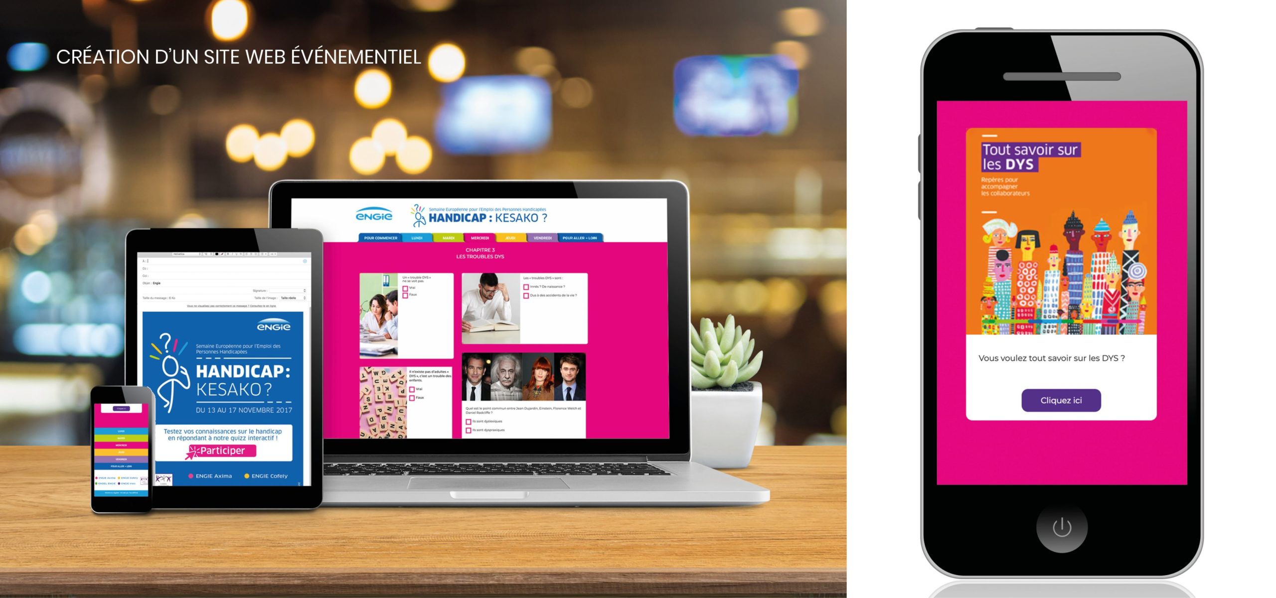 Nous partageons avec le Groupe ENGIE un engagement social profond, notamment en ce qui concerne l’insertion des personnes en situation de handicap et le bien-être des collaborateurs. Dans ce cadre, nous accompagnons depuis plusieurs années les missions RSE et handicap du groupe dans l’élaboration et la réalisation de leurs plans de communication diversité, handicap et qualité de vie au travail.